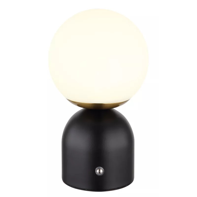 Újratölthető asztali lámpa fém fekete matt, fém sárgaréz , műanyag fehér, kábel PVC fehér,szabályozható, okozatmentes érintés dimmer,színek rögzíthetők,memóriafunkció.USB,akkuval töltési idő: kb.3 óra ,ø: 120mm,M:210mm, LED 2,5W 5V, 189lm kimenet,CCT