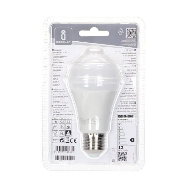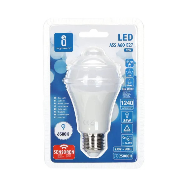 LED izzó mozgásérzékelős A60B E27 12W 280° A5S Hideg fehér Aigostar