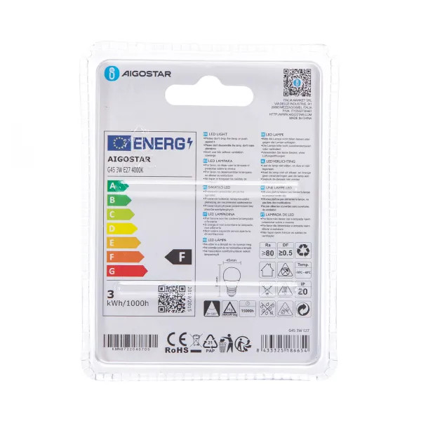 LED izzó G45 3W E27 Természetes fehér Aigostar