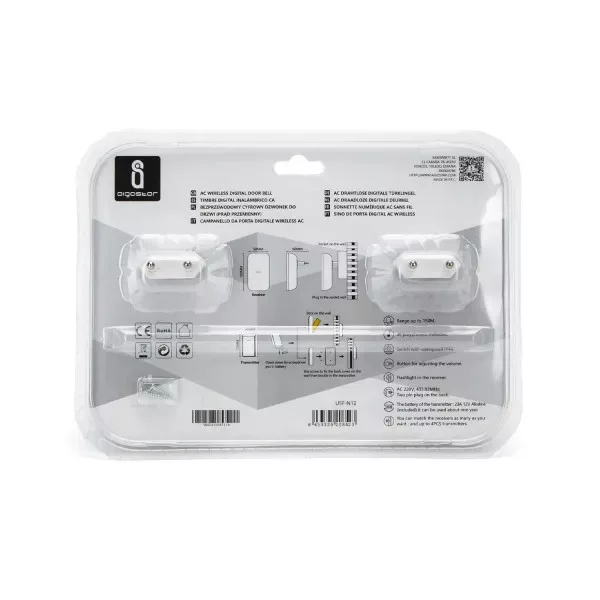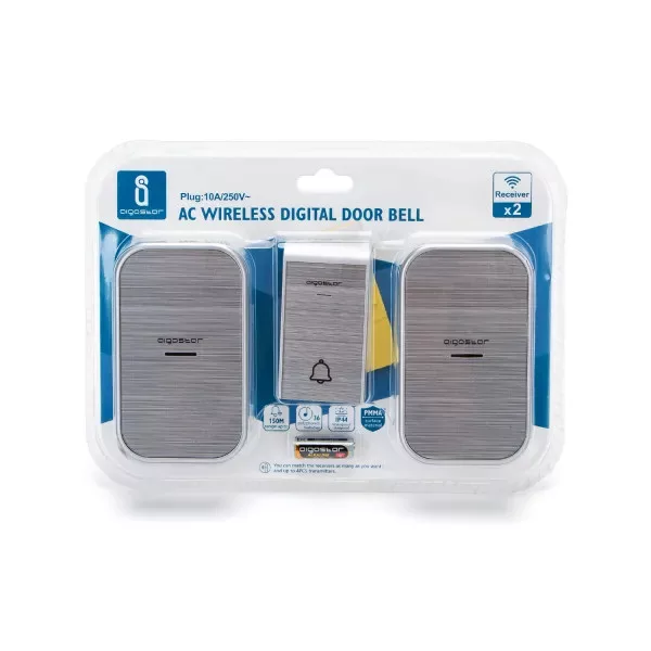 Vezeték nélküli digitális ajtócsengő dupla vevő egységgel Ezüst IP44