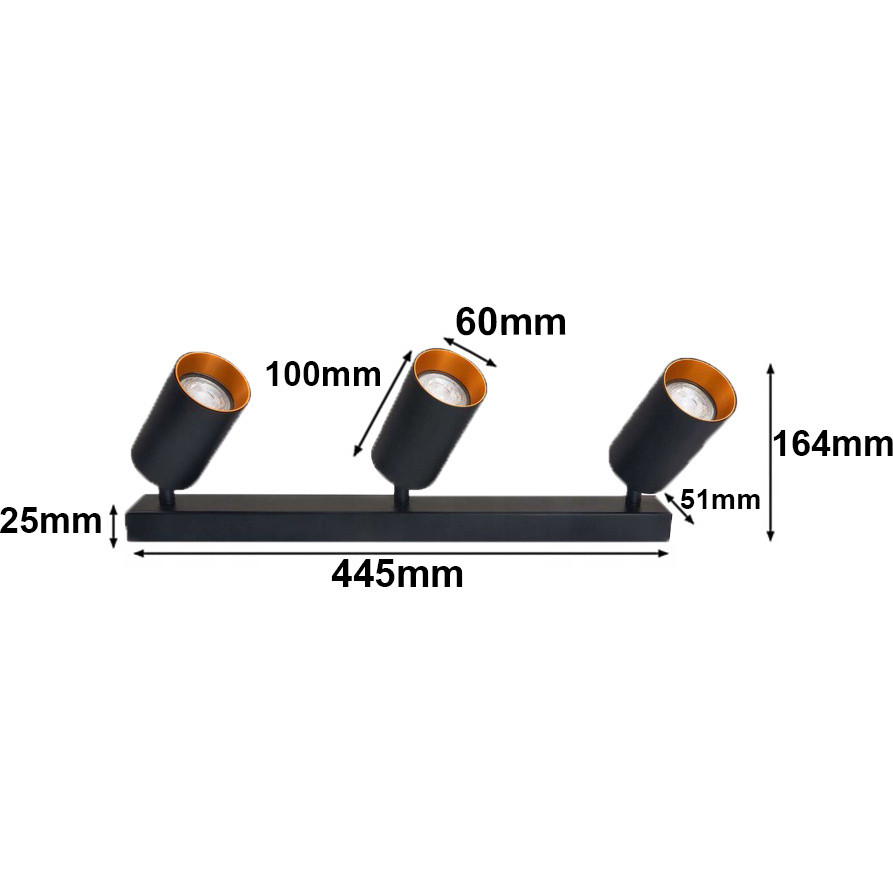 Termékkód:MasterLED Eris fekete-arany mennyezeti 3-as lámpa keret, GU10-es foglalattal